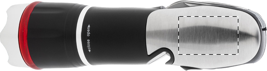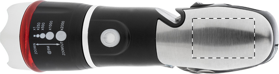Multifunktions-Taschenlampe aus ABS und Edelstahl mit Nothammer, Gurtschneider und Multitool mit 9 Funktionen. Mit zoombarem LED-Licht und 3 Lichtmodi. Exkl. Batterien (3x AAA).