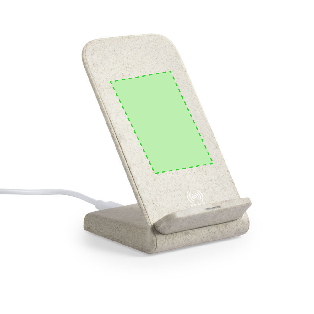 Naturlinie, kabelloses Ladegerät mit Smartphone-Halterungsfunktionalität. Schale aus Weizenstroh, um die Verwendung natürlicher Rohstoffe zu fördern und Schadstoffemissionen zu reduzieren. Schnellladegerät, 10W-Funktion und kompatibel mit Geräten, die mit drahtloser Ladetechnologie ausgestattet sind. LEd-Anzeige für den Ladestatus und 100 cm Kabel. Großer Druckbereich und präsentiert in einer attraktiven, individuellen Öko-Design-Box.